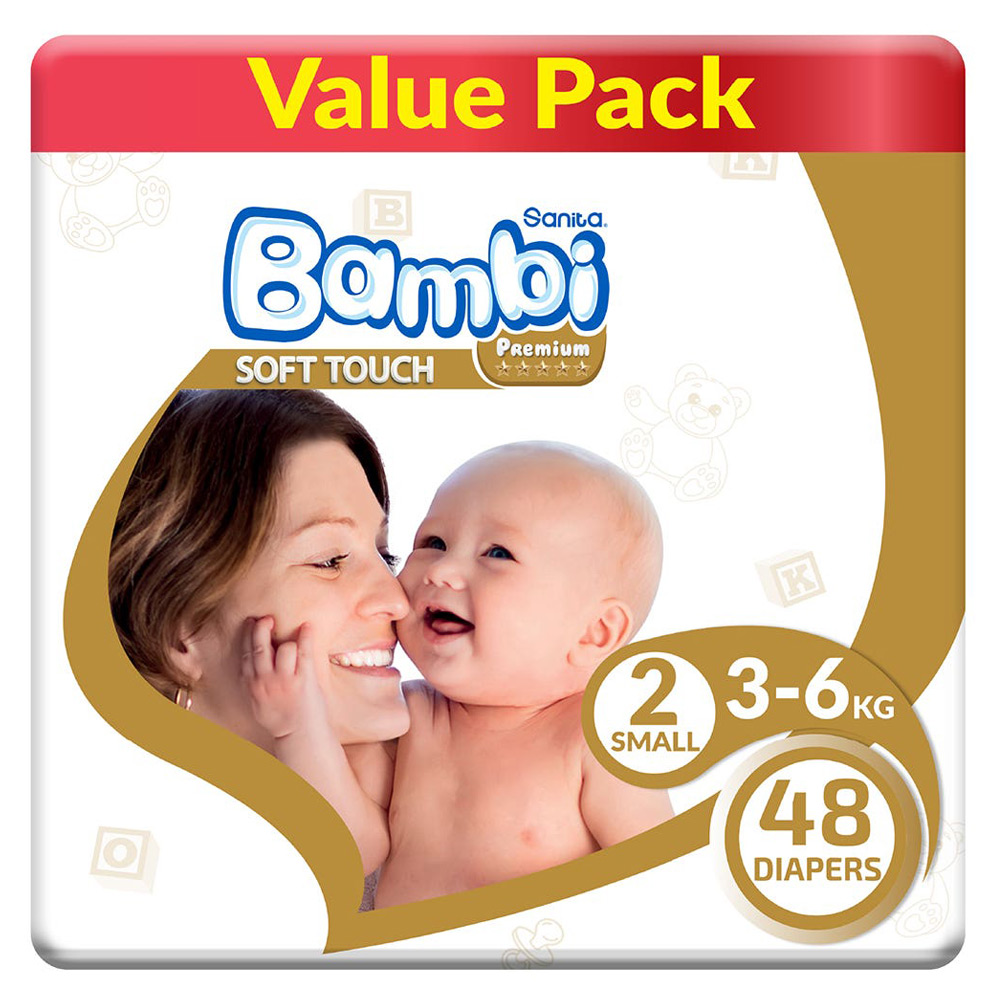 بامبي حفاضات (2) عبوة اقتصادية 48 حفاضة