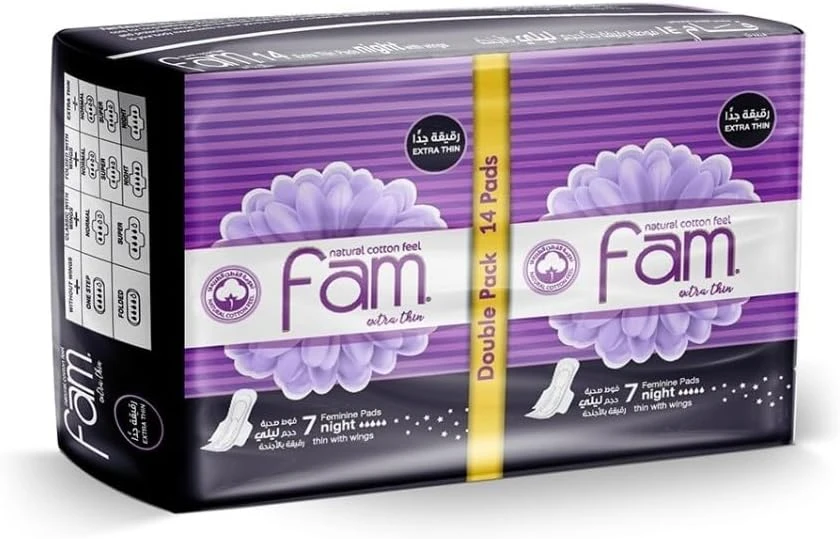 فام فوط نسائية رقيقة جداً ملمس القطن حجم ليلي، عدد 14