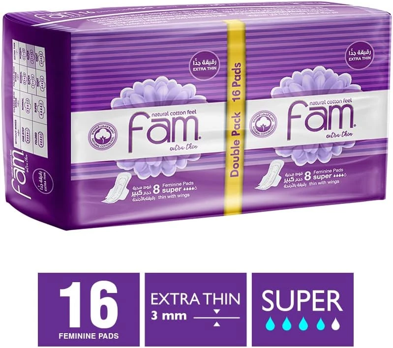 فوط صحية فام عبوة اقتصادية فوط قطنية بالأجنحة حجم كبير رقيقة جدا - 16 فوطة
