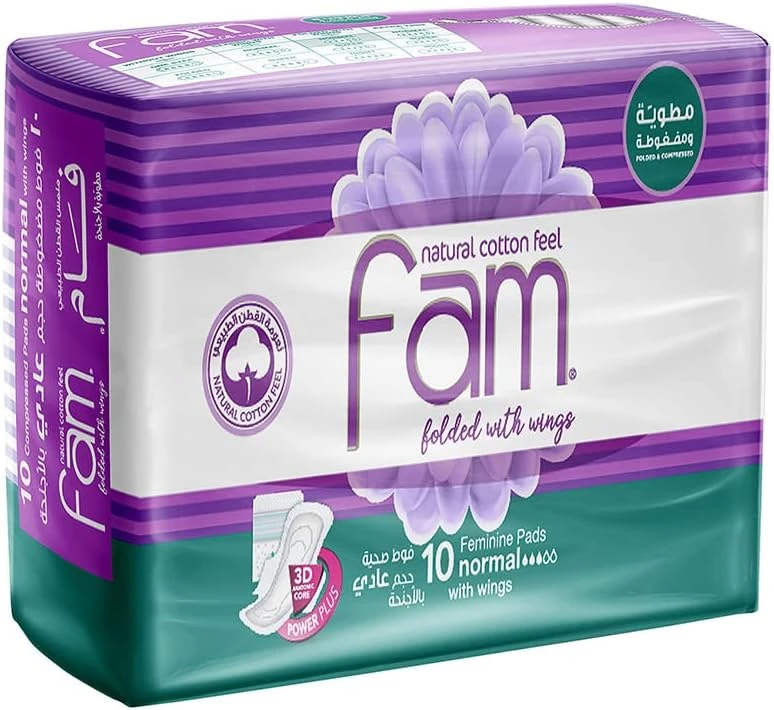 فوط فام الصحية مضغوطة حجم عادي بالأجنحة – 10 فوط