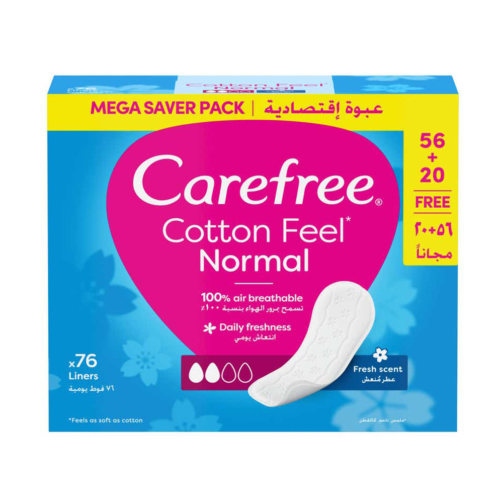 كيرفري فوط يومية غير معطرة حجم عادي ملمس القطن عبوة 56 +20 فوطة