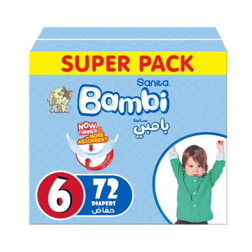 بامبي حفاضات (6) سوبر بوكس 72 قطعة