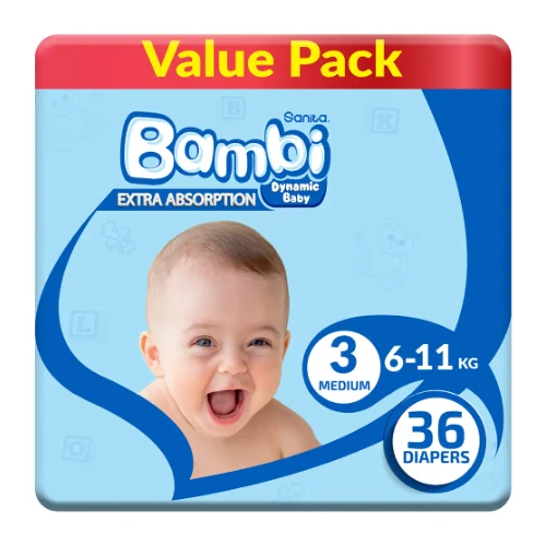 بامبى حفاضات (3) العبوة القيمة 36 حفاضة